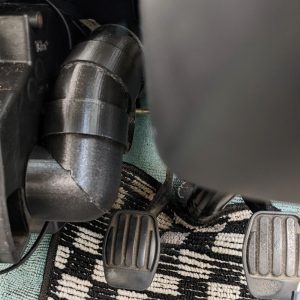 このホースがクラッチペダルを踏む左足に当たりそうですし見た目もよくない、