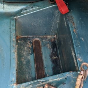錆チェンジャーで防錆してからパテで穴埋めして、底に防音用スポンジを敷きました