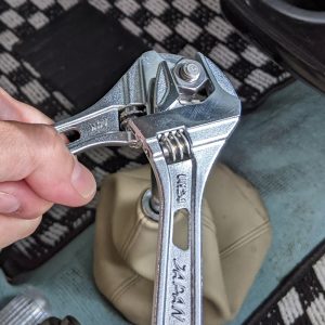 そして下のナットだけをレンチで反時計方向に回せば、延長バーが外れます