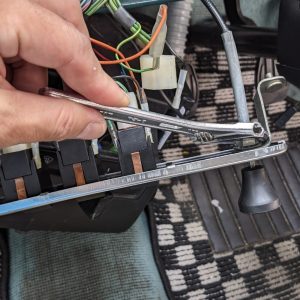 1998年製のミニのダッシュボードをMK1風にするため、今回はセンタースイッチパネルを交換します