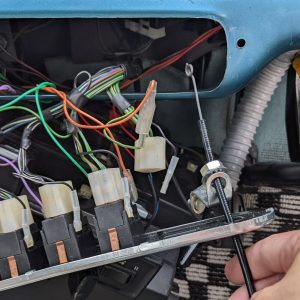センタースイッチパネルから、チョークワイヤーを引き抜きます